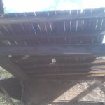 Nachdem sich durch die Dachpappe gekämpft wurde, konnte die, leider nur noch als Feuerholz brauchbare, Schalung entfernt werden. Die Sparren und Pfätten konnten dagegen aufbewahrt werden und sind heute teilweise wieder in das Wohnhaus integriert.