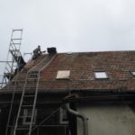 Eine Begebenheit hätte allerdings auch ganz anders verlaufen können. Wir sind Gott dankbar, dass er aufgepasst hat und schlimmeres verhindert hat. Einer die Ziegelboys (diese kleinen Böcke, auf denen man die Dachziegel ablegen kann) löste sich auf einmal und rutschte das Dach hinunter, überschlug sich und verlor dabei seine Ziegel, schlug 2 Mal auf den Dachfenstern auf und landete dann auf dem Gerüst. Niemand wurde verletzt. Es ist auch ein Wunder, dass keines der Fenster kaputt gegangen ist und auch sonst alles heil blieb. Danke Gott.