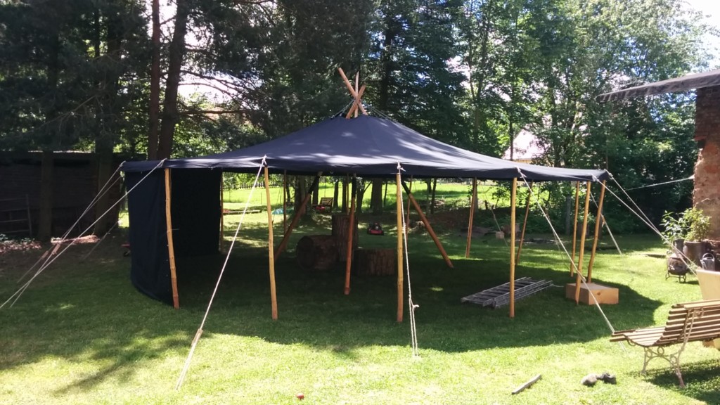 Ja die Jurte war eine gute Idee. Da für Sonntag eventuell doch Schauer zu erwarten waren, wollten wir gewappnet sein. Und so stand nach kurzer Zeit, auch dank Ulf, die Jurte. Und sie passt gut in unseren Hof und schafft eine schöne Mitte.
