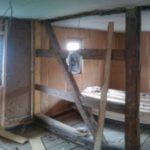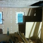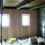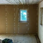 Wir sind immer noch dabei, die Holzfaser ins Haus, genauer ins Obergeschoss, zu bringen. Eine klare, dennoch nicht so kurzwierige Aufgabe. Die Schwierigkeit ist hierbei, neue gerade Materialien in ein Haus zu bringen, was aus unebenen Wänden mit vielen Rissen und nicht ganz so graden Wänden versehen ist. Am Ende muss die Holzfaser ohne Hohlräume verpresst an der Wand anliegen. Das bedeutet in der Praxis: Fugen austopfen. Holzfaser Flex Matten auseinanderzupfen, hinterfüllen,… bis sie gepresst bündig in die Lattenkonstruktion passen. Das ist ein bisschen wie Tetris,  da das Material nicht so weich wie Mineralwolle ist, eher wie eine alte Matratze. Da festen Platten, die dann auf die Konstruktion geschraubt werden sind dann aber auch nicht sooo fest, so dass man einen guten Kompromiss zwischen Anpressdruck und Bündigkeit finden muss. Aber es geht voran 🙂