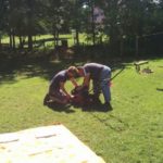 • Kuhstall: Eine neue Schwelle ist drin – und sehr schön – direkt bis ran mit den Feldsteinen gepflastert – ein Meisterstück von Gotthard und Wolfgang. Außerdem fand die erste offizielle Familienfeier im Kuhstall statt – eine Schuleinführung.
