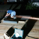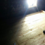 • Die neue Schalung wurde bis in den späteren Abend auf die Sparren genagelt und die erste Schicht Dachpappe aufgezogen.  Der Schornstein erhielt eine Befestigung und Verlängerung bis an die Traufe vom eigentlichen Dach.