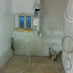 • Im Heizungsraum hat Wofgang die letzten Stellen zugeputzt und es erfolgte die erste „Weißung“ – ein Abenteuer mit einger Frustration, der Erstkontakt mit Kalkfarbe (im flüssigen Zustand absolut nicht deckend – erst wenn sie getrocknet ist wirds weiß)