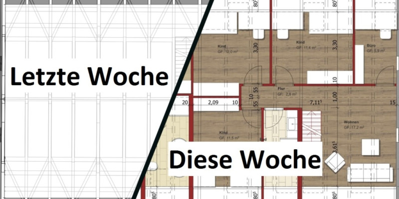 Am Montag Vormittag war auf der Elstner- Seite im Dachgeschoss lediglich der Grundriss mit ein paar Latten gelegt. Am Montag Abend standen dann schon die ersten Holzständer. Darauf folgten noch gefühlt hundert weitere Ständer und erste OSB Platten. Schon ließen sich die ersten Räume „erfühlen“… Ein geniales Gefühl 🙂 !