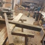 Bei Jesus House sollte ein großes Holzkreuz stehen und wir hatten genug alte Balken, aus dem man eines bauen konnte. So machten sich die beiden Jungs an die Arbeit.