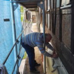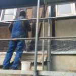 Ja, es grenzt ein bisschen an Kunst, alles am Ende mit dem Pinsel noch ein bisschen in Form zu bringen, aber es macht auch ziemlich viel Spaß bei schönem Wetter. Am Samstag hat uns dann Gotthard noch mit ausgeholfen, so dass wir schon 2/3 Sichtfachwerk geschafft haben.