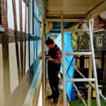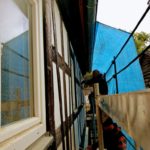 Heute kams dann unter widrigen Bedingungen (Kalt, Regen) zum Abschluss, wo nochmal alles „schön“gepinselt wurde und die Fenster ihre Deckleisten erhalten haben inklusive vom Gerüst gekippten Farbglas (Yeah!). Und nun müssen nur noch die Fenster geputzt werden, und dann wird nach vorn gerüstet.