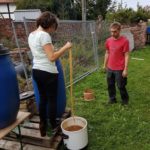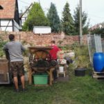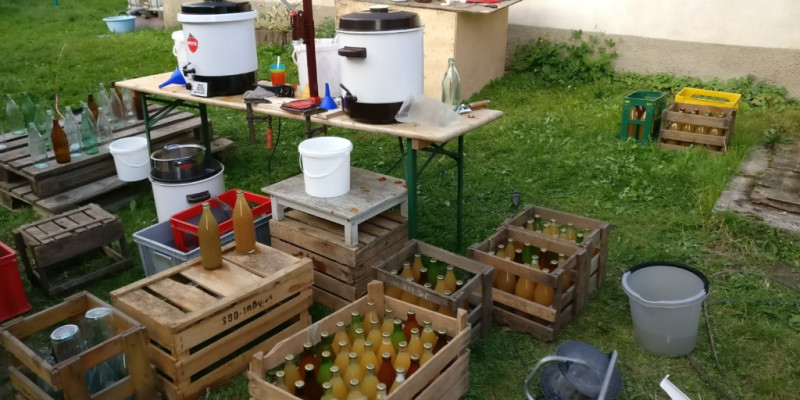 Überall Äpfel und Birnen an den Bäumen und überall schließen die Saftpressen. Nicht mit uns. Wir wollten auch dieses Jahr nicht tatenlos zusehen, wie das gute Obst vergammelt und „mussten“ es einfach zu Saft verarbeiten. Also fuhren wir die benötigte Technik auf und füllten am Ende des Tages 170 Flaschen mit dem wertvollen Getränk. Die Geschmacksprobe sagt: Superlecker. Einfach echt.