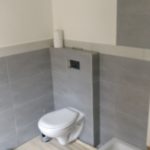 Soviel zur Theorie. In der Praxis haben die Räume erstmal als Bauküche und Abstell- / Baulager gedient.  Da uns aber immer wieder Anfragen zur Wohnung ereilen haben wir in den letzten 3 Monaten mit vielen Helfern rangeklotzt und Stück für Stück das erste Zimmer mit Nasszelle hergerichtet. Vom Fenstereinbau, Heizleitung / Elektrik verlegen über Putzen,  Trockenbauwände Stellen, Decken abhängen, Vorwände stellen, Badelemente einbauen bis hin zum Tapezieren, Fußboden legen, Streichen, Küche einbauen, Türen abbrennen und Abdichten, Schwellen neu einsetzen,… Eine Stange Arbeit.