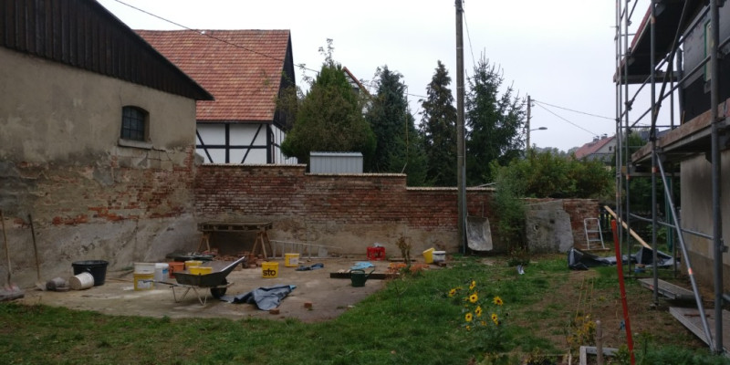 Der letzte Stand zur Mauer war, dass der Abnehmen der Ziegel geschafft und das Neumauern noch aussteht…