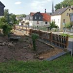 Wenn ich so zurückdenke, wirkt der Zaunbau gar nicht so aufwändig, aber insgesamt sind doch eine Menge Abende in der Werkstatt und an der Hauptstraße dafür draufgegangen. Nun sind wir dankbar, einen so schönen Zaun zu haben. Er bietet Sicherheit für  die Kinder und lädt doch ein, mal hinüber zu schauen und sich auch zu begegnen.