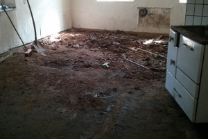 Auf das Entrümpeln folgte nun die Entkernung der Räume im Erdgeschoss, speziell des Bodens.